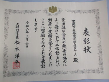 文部科学省では、PTAの健全な育成と発展に資することを目的として、全国の学校でPTA活動に優秀な実績を上げている学校に文部科学大臣表彰を行っています。