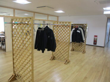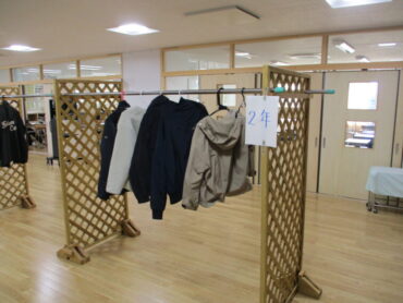 また、防寒具については、各学年、多目的スペースに防寒具掛けを準備しました。登校時に着ていた防寒具は所定の掛け具に掛け、学校生活は制服で整えてもらいます。エアコンも完備しておりますので、寒い場合はインナー等で寒さ対策をしてください。ご協力よろしくお願いします。
