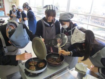 2年 家庭科「調理実習(ハンバーグ)」