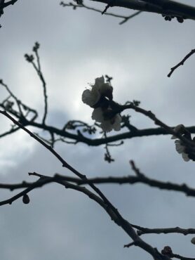 本日、本校校門横に植えられている紅白の梅のうち、白梅が開花いたしました。ちなみに梅は本校の校章で、前田家の家紋と同じです。清らかな白い花がほころぶ様子は、まさに春の兆し。県立高校入試の初日を迎えた3年生の前途を静かに、そして力強く祝しているかのようです。紅梅も続いて見頃を迎えます。ご来校の際は、どうぞご覧ください。受験生の皆さんが日頃の学びの成果を発揮できますよう、全校生徒と先生方は、心より応援しています。3年生、頑張ってください!