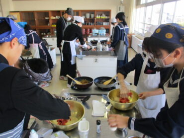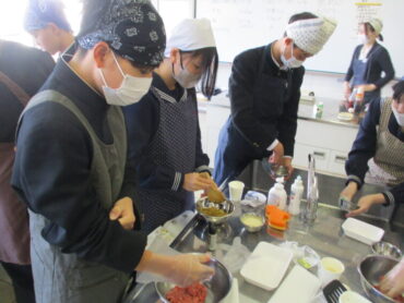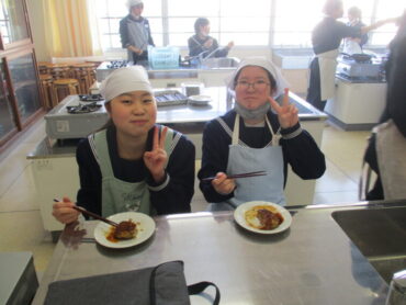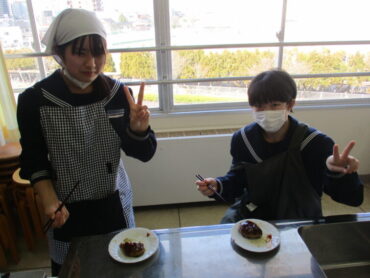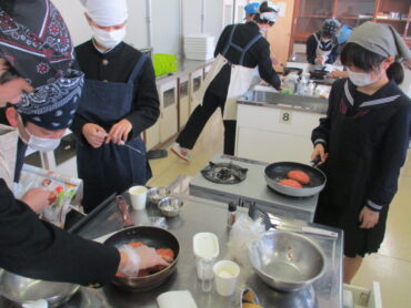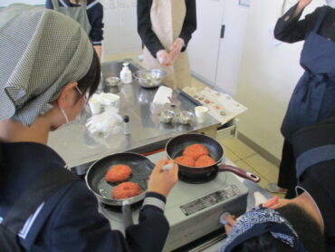 2026.3.9 NEW 2学年 2年 家庭科「調理実習(ハンバーグ)」② 2年生は家庭科で調理実習(ハンバーグ)を行いました。生徒は、朝早めに登校して下ごしらえをして実習に臨みました。班員で役割を分担し、協力しながら調理実習に取り組む姿が見られました。材料の準備や調理工程を相談し合いながら、サポートしながら安全に楽しく実習を行うことができました。 もちろん、最後はおいしくいただきました!ハンバーグ最高です!