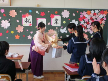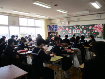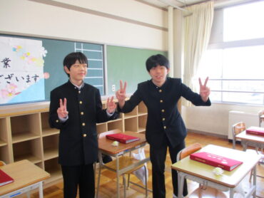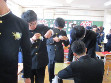 卒業生にとっては、高陵中学校で過ごす最後の1日となりました。教室には心のこもった素敵な掲示物が飾られており、生徒にとっては嬉しいサプライズとなりました。学級活動では、先生方から一人一人にメッセージカードや温かい言葉が贈られ、これまでの思い出を振り返る大切な時間となりました。朝の会から始まり、歌練習、式典、学年合唱から学活まで内容は盛りだくさんでしたが、終始笑顔があふれ、卒業生にとって忘れられない充実した一日となりました。最高の思い出になりましたね!