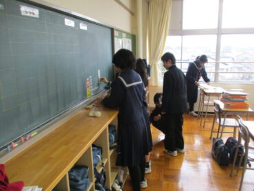 全校で、「愛校の日」を行いました。愛校の日は、普段使っている校舎の気になる場所を徹底的に掃除をします。生徒は、汚れている場所を自主的に見付けて掃除をしていました。愛校心が強いところが高陵生のよいところです。いよいよ来年度から小学生と一緒に学校生活を送ります。生徒は、気持ちを込めて掃除をしていました。ありがとう!