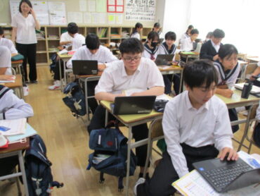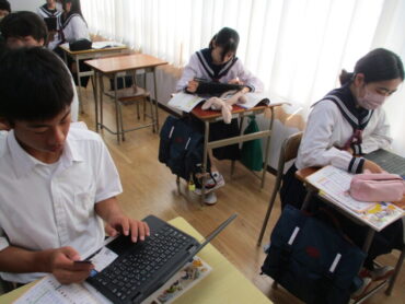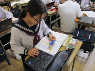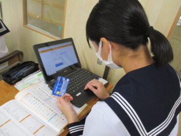 2年生は家庭科の時間に、商品の購入方法や支払い方法、契約の仕組みの特徴を学習しています。学習専用端末を使って、仮想でクレジットカードを使って自分の欲しい商品を購入していました。ネットで買い物をする時は、クレジットカードは大変役立ちます。しかし、無計画に利用してしまうことには十分な注意が必要です。将来のためにも今のうちから慣れていきましょう。本物とそっくりな練習用のカードがあることに驚かされました。