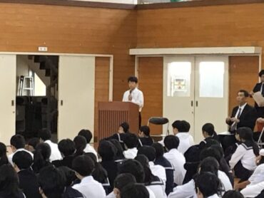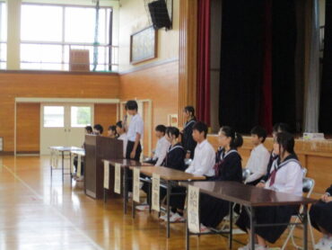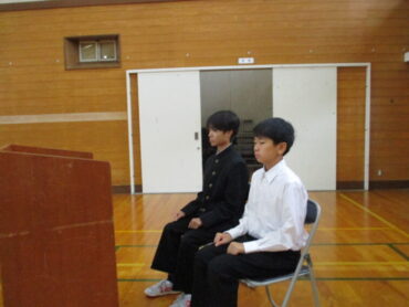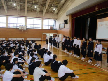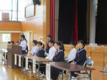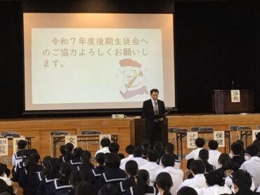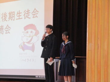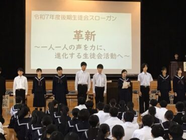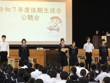 1限目に全校生徒が集まり「公聴会」を行いました。令和7年度の後期生徒会の活動方針・活動内容を知ることで、生徒会の目的を共有し連帯感を高めました。