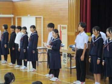 前期の生徒会役員のみなさん本当にお疲れさまでした。後期生徒会役員を中心に小学生にも夢や希望を与えることができる生徒会にしてください。