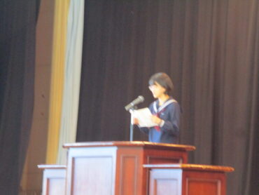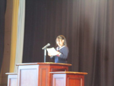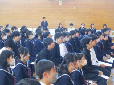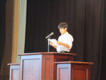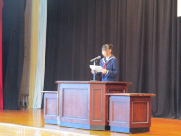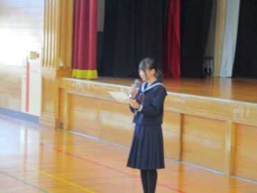 2年生の「学年人権弁論大会」を体育館で行いました。各クラスで選ばれた代表2名が、気持ちを込めて堂々と学年の生徒の前で発表しました。「自分らしさ」「声をかける勇気」「本心を伝える」「様々な人権について」等、日常の家庭生活や学校生活等の中で得た体験に基づく作文を発表しました。一人ひとり堂々と自分の意見を述べることができました。大変立派な発表でした。人権尊重の大切さや基本的人権についての理解を深め、豊かな人権感覚を身に付けてください。