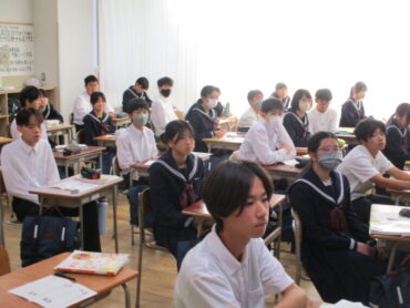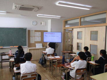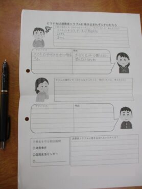 2年生は、家庭科の時間にどうすれば消費者トラブルに巻き込まれずにすむかを考えていました。最近では、インターネットを介して、詐欺的なアプリや、心当たりのない不審な荷物やSMSなど悪質な手口も多く、これからの社会を生き抜くためにはとても大切な授業内容でした。生徒は、自分事として真剣に先生の説明を聞いていました。スマートフォンは便利ですが、うまい話には、気を付けてください!