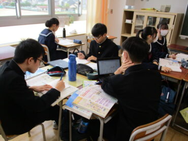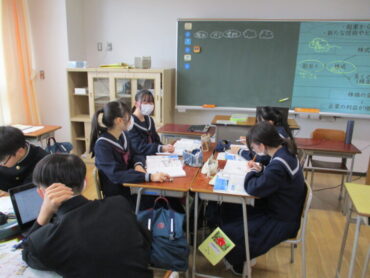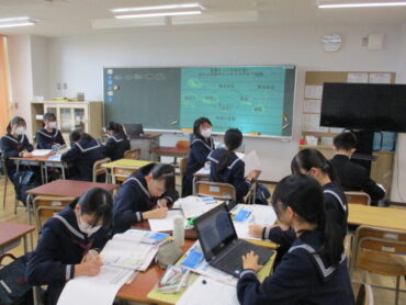 2025.11.15 3年 社会「企業の種類と株式会社」 3年生の社会で、企業の活動はどのような仕組みで行われているかを学習しています。企業には様々な形態があり、中小企業が日本全体の約99%を占めることに驚かされました。生徒は起業やベンチャー企業に興味をもち、学習専用端末を使って株式の仕組みや投資について真剣に調べていました。これからの時代は、あなたのアイデアが未来をつくる!夢を持って挑戦しよう!