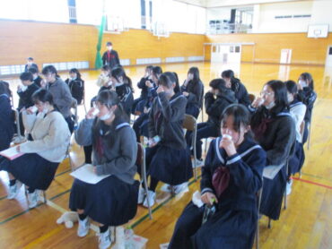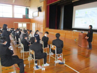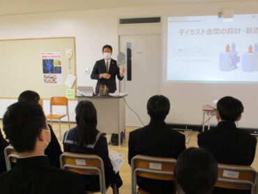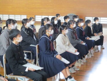 2025.11.19 NEW 1学年 富山県中学生ものづくり教育事業 講師派遣事業 1年生で、富山県中学生ものづくり教育事業として、子供たちにものづくりの楽しさを実感し将来の夢につなげるための事業として、講師の先生を派遣していただきました。お忙しい中、魚岸精機工業の魚岸成光様、澁谷様、北陸コカ・コーラボトリングの松井様、山下様にご来校していただき、会社の紹介や仕事の面白さや、やりがいについて話をしていただきました。将来どんな仕事をしたいか考え、自分の夢を見付ける第一歩にしてください。ご講演ありがとうございました。