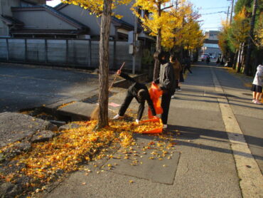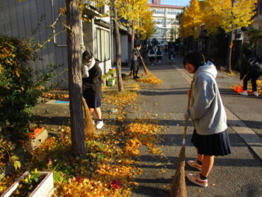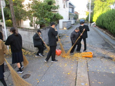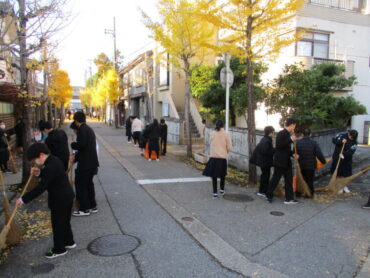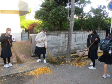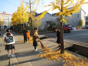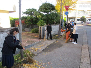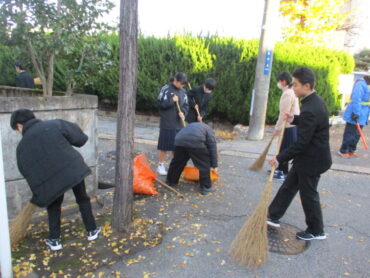 2025.11.20 NEW 全校生 落ち葉清掃ボランティア 雨天で延期されていた本校前のイチョウ並木の落ち葉清掃ボランティアが始まりました。この時期、本校の校門前のイチョウの葉が、一斉に舞い落ちます。通学路が黄金色になり美しい光景ですが、落ち葉が散乱するので毎年高陵生が落ち葉清掃を行っています。 1年生~3年生まで関係なく、たくさんの生徒が落ち葉清掃に参加してくれました。みんなで協力することで、落ち葉があっという間に集まり、道はすっきりしました。 高陵中学校は、地域全体の美化を目指して日々活動しています。