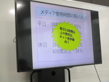 子供たちが自分の生活行動をよりよく改善し、明るく健康で活力ある生活を送るため、学校保健委員会を毎年実施しています。学校三師の先生方やPTA会長・副会長さんにも来校していただき、各クラスとオンラインでつなぎ、全校生徒で考えました。高陵生の生活習慣について保健委員会からの発表を聞いたり、学校医の寺田先生から子宮頸がんのことや「幸福」について話を聴いたりしました。「幸福」とは小さい成長を繰り返すことという言葉がとても印象に残りました。ありがとうございました。