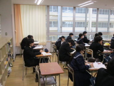 2年生は国語の時間に、用言の活用について学習しています。動詞の活用には5種類あり、動詞の終わりに「ない」を付けると活用語尾が変化します。書くは、書 か ないの「か」がアの段で、五段活用です。起きるは、起 き ないの「き」がイの段で、上一段活用です。活用にはルールがあることに生徒は驚いていました。日頃、考えないで話しているので大変勉強になりました。
