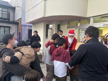 12月8日(日)夕方に平米公民館で、毎年恒例となっている「もちつき大会」と「イルミネーション点灯式」がありました。高陵中学校区の園児・児童・生徒がたくさん参加し、地域の方々が作られた豚汁を食べさせてもらいながら、「もちつき」を体験しました。フィナーレには、公民館前で「イルミネーションの点灯式」があり、サンタさんも来場して、お菓子のクリスマスプレゼントがありました。中学生もプレゼントをもらえてよかったです。