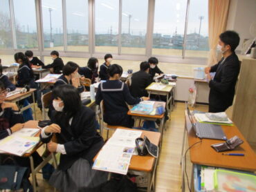 3年生は、社会の時間に「日本銀行」の仕組について学習していました。先生が実際のお札を提示されたり、お金の流れを黒板で分かりやすく表示されたりと工夫して生徒に伝えていました。生徒は、日銀のお金の流れについて紙幣を発行したり、金融政策の一環として、民間銀行に資金を貸し出したり、経済を活発にしていることを理解していました。「利上げ」を行うかもとニュースで伝えていましたが、日本銀行が政策金利を上げることで、世の中の金利全体が上昇しやすくなります。たくさん学んでください。