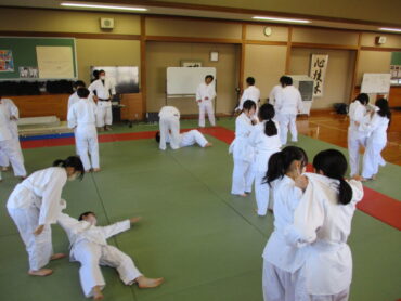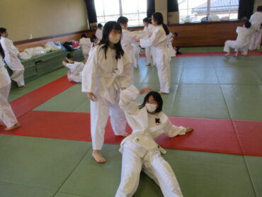 2年生は、体育で柔道を行っています。柔剣道場は少し寒いですが、生徒は元気に活動をしていました。寝技の「けさがため」、投げ技の「体落とし」の練習をしました。柔道2年目になると生徒も慣れてきており、受け身もしっかりと取れていたようです。様になってきましたよ!
