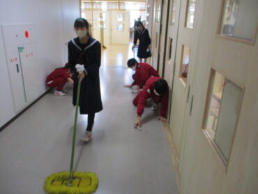 12月19日は「愛校の日」2回目を行いました。2学期も終わりになり、普段使っている校舎の気になる場所を徹底的に掃除をしました。新校舎も旧校舎も関係なく、生徒は汚れている場所を自主的に見付けて掃除をしていました。みんなが過ごしやすいウェルビーイングな高陵中学校にしましょう。来週からはいよいよ冬休みです。気持ちよく冬休みが迎えられそうですね。