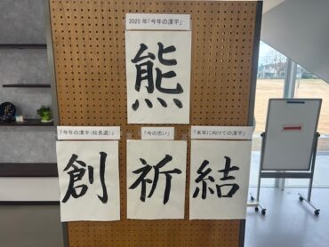 終業式では、校長より2025年の振り返りがあり、校長が選ぶ今年の漢字が「創」でした。未来の新しい高陵中学校を「創り始めた年」ということや、一人ひとりが「自分の成長を創った年」ということからでした。