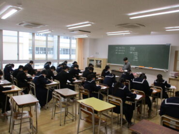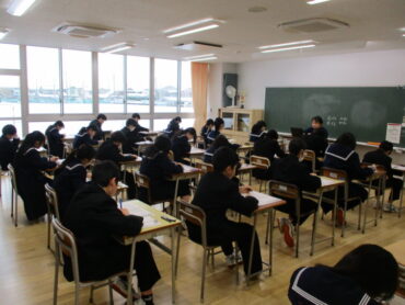 本日より、1・2年生は「復習テスト」、3年生は「実力テスト」を行っています。冬休みの学習の成果を試すチャンスとして全力で取り組んでください。