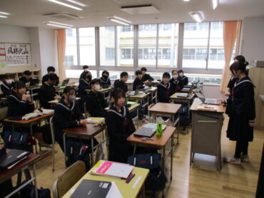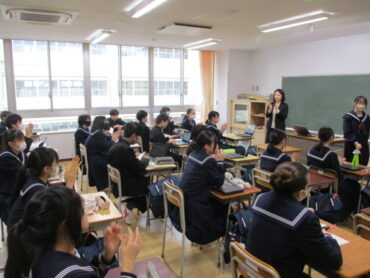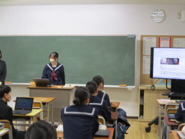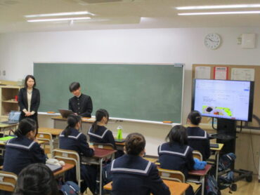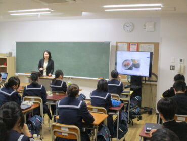 2026.1.14 2年 家庭科「冬休み課題(正月の料理)」 2年生は、冬休みの課題で、伝統的な日本の食文化について、生徒一人ひとりが調べ、実際に調理し、その過程や工夫をまとめて発表していました。生徒は、お雑煮やおせち料理等を家族と協力して作りました。だしの取り方や味付けの仕方等、学んだことを丁寧に説明していました。写真を使ったり、味や見た目の感想を具体的に伝たりするなど、聞き手に分かりやすく伝えようとする工夫が見られました。 今後もこうした実体験型の学習を大切にしていきたいと思います。