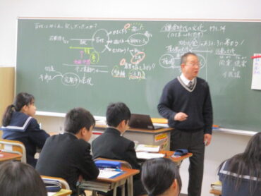 鎌倉時代は1185年から1333年までの時代で、源頼朝が鎌倉幕府を開いたことから始まります。この時代は武士による政権が確立され、武家政権が成立しました。平安時代は美しさ重視の建物、鎌倉時代は丈夫で質素な建物が多くなります。生徒は、平安時代に建てられた平等院鳳凰堂と鎌倉時代に建てられた円覚寺舎利殿や東大寺南大門とを比較して、住むとしたらどちらがよいかという視点で考えていました。見た目の豪華さを取るか、使いやすさ重視でいくか難しい選択ですね!
