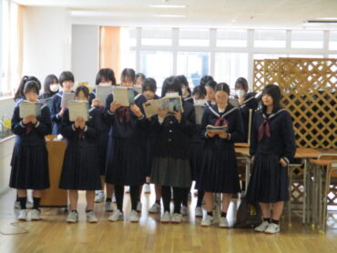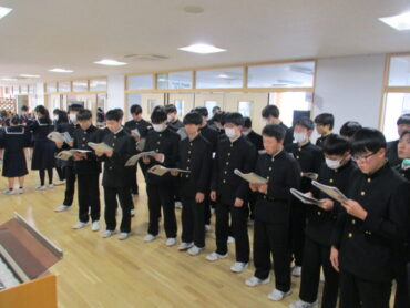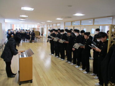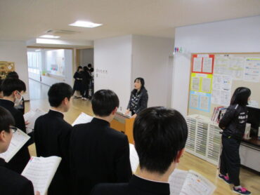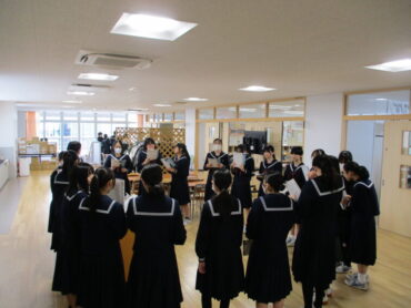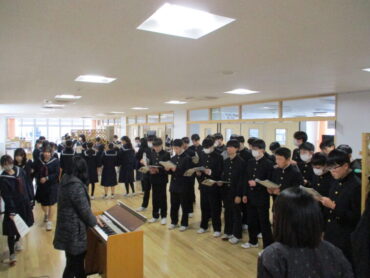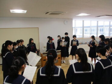 3年生が昼休みに卒業式の歌練習をスタートしました。オープンスペースからは、気持ちのこもった歌声が響いています。限られた時間の中ですが、3年生の生徒たちは互いに声を合わせながら、卒業式をより良いものにしようと頑張っています。本番に向けて、3年生の取り組みを応援してください。すばらしい歌声を期待していてください。