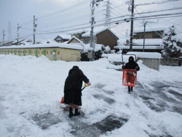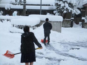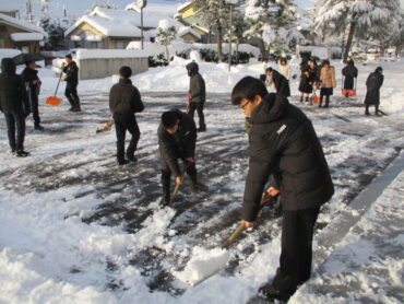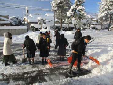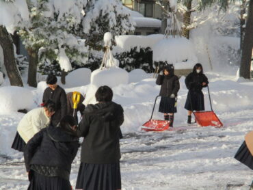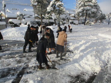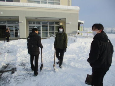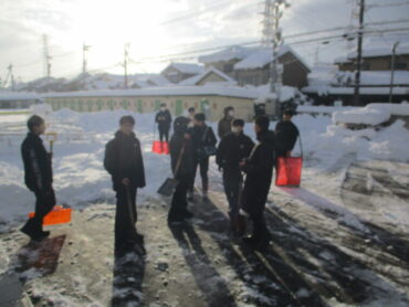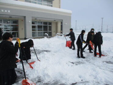 昨日からの大雪により、生徒玄関前が雪で埋もれてしまいましたが、今朝、3年生の生徒の皆さんが率先して除雪のボランティアに取り組んでくれました。