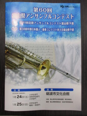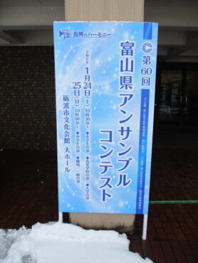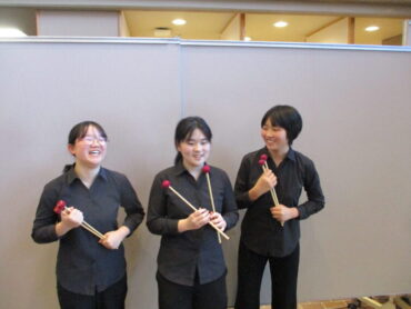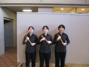 1月25日(日)、砺波市文化会館で富山県アンサンブルコンテストが開催され、本校吹奏楽部の打楽器三重奏が出場し、「雅 ~3人のマリンバ奏者のための」を演奏しました。3人の息がぴったりと合い、音の一つ一つが自然につながる、たいへん完成度の高い演奏を披露してくれました。