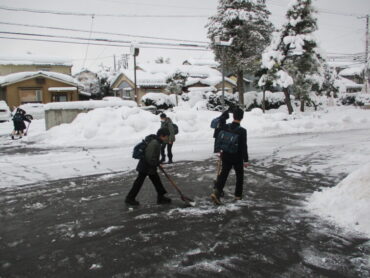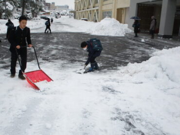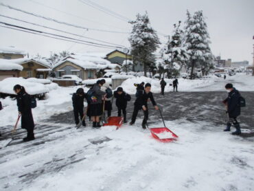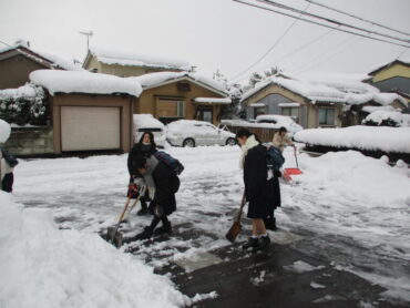 2026.1.30 NEW 1学年 1年 除雪当番 昨日からの雪により、本日も生徒玄関前が雪で埋もれてしまいました。今日は1年生の生徒が、朝から元気いっぱいに除雪作業に取り組んでくれました。1年生の除雪当番は、初めてで生徒は張り切ってお手伝いをしてくれました。雪に負けず、学校のために力を合わせて働く姿がとても頼もしく、輝いて見えました。1年生の皆さん、ありがとう!
