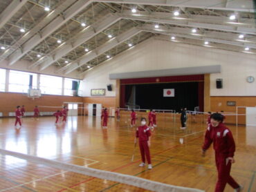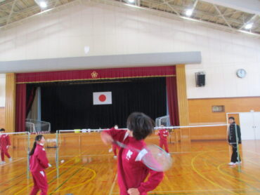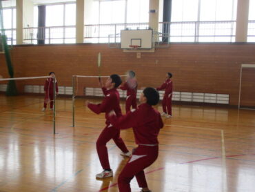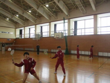2年生は、体育でバドミントンを行っていました。男女問わず対戦相手を決めて、笑顔でバドミントンを楽しむ姿が見られました。ラリーが続くたびに歓声や拍手が起こり、体育館全体が明るい雰囲気に包まれていました。高陵中学校では、冬場の時期の恒例スポーツになっています。