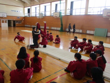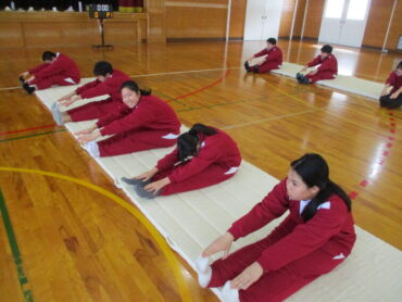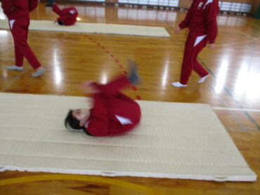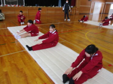 1年生は、体育の時間にマット運動を行っています。小学生以来のマット運動であったためか、生徒は目を輝かせて取り組み、とても楽しそうな様子でした。久々のマット運動に、体を伸ばそうと一生懸命ですが、思うように伸びず、あたふたする様子が微笑ましかったです。少しずつ動きがよくなっていくのが楽しみです。がんばって!